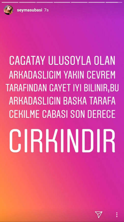 Haberlerin ardından ilk açıklama Şeyma Subaşı'dan gelmişti. Subaşı, "Çağatay Ulusoy'la olan arkadaşlığım yakın çevrem tarafından gayet iyi bilinir. Bu arkadaşlığın başka tarafa çekilme çabası son derece çirkindir" diyerek çıkan iddiaları yalanladı.