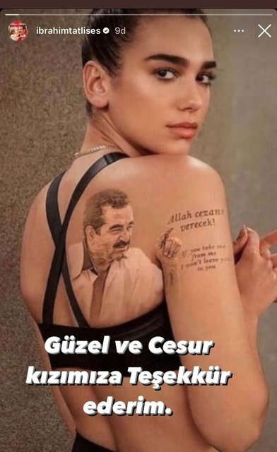 İbrahim Tatlıses, Dua Lipa'nın photoshop uygulanarak, "Allah cezanı verecek" sözlerinin yazıldığı ve kendi fotoğrafının dövme olarak uygulandığı kareyi gerçek sandı.