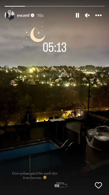 Ünlü oyuncu geceleri artık rahat uyuyamadığını ima ederek şaşırtan bir fotoğraf paylaştı. Evcen'in bu durumdan rahatsız olduğunu belirttiği paylaşımı büyük ilgi gördü. Evcen kimin için böyle bir paylaşım yaptığına dair başka bir açıklama yapmadı.