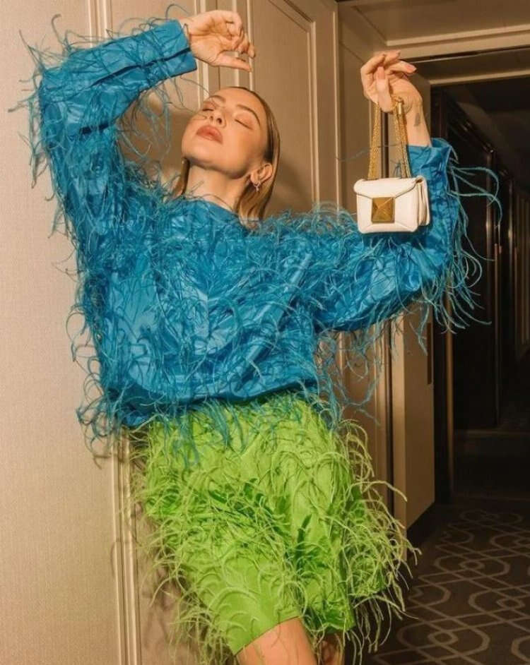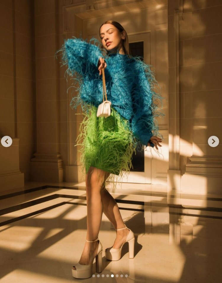 İş insanı Mehmet Dinçerler ile yaşadığı aşkla gündemden düşmeyen şarkıcı Hadise, Paris Moda Haftası'ndaki mavi - yeşil kıyafet kombiniyle sosyal medyada gündem oldu.
