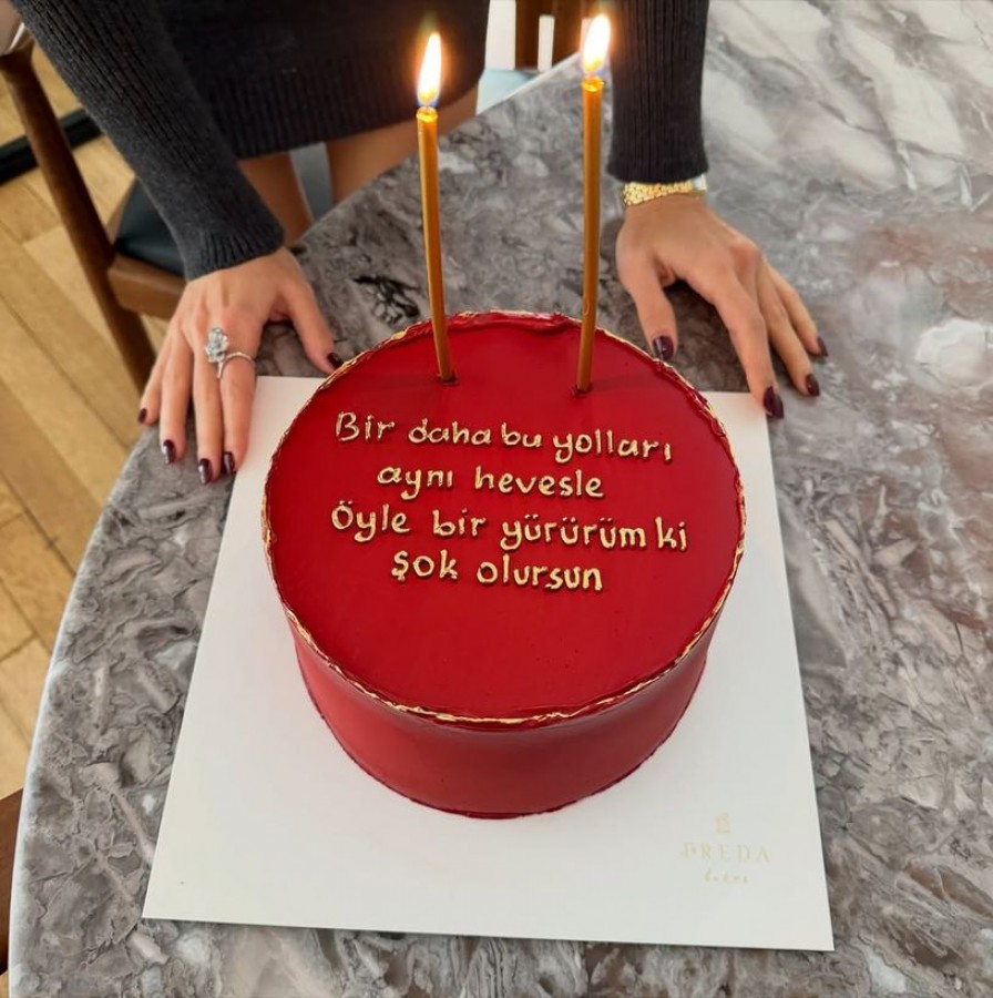 Hande Erçel'in doğum günü paylaşımları arasında, pastasının üzerindeki, "Bir daha bu yolları aynı hevesle öyle bir yürürüm ki şok olursun" notu dikkat çekti.