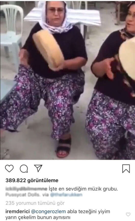 Başarılı şarkıcı Instagram'da hızla yayılan iki kadının söylediği şarkının altına " Abla tezeğini yiyeyim yarın çekelim bunun aynısını" yorumunu yaptı.