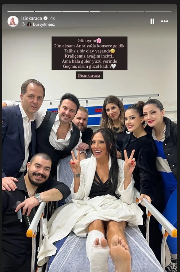 Antalya'da konser veren Işın Karaca, talihsiz bir kaza geçirdi. İkinci kez sahnede kaza geçiren Işın Karaca, bu sefer kolay atlamadı. Bir önceki kazasında ayak bileğini inciten Işın Karaca'nın, bu sefer geçirdiği kaza sonrası bacağını alçıda buldu.