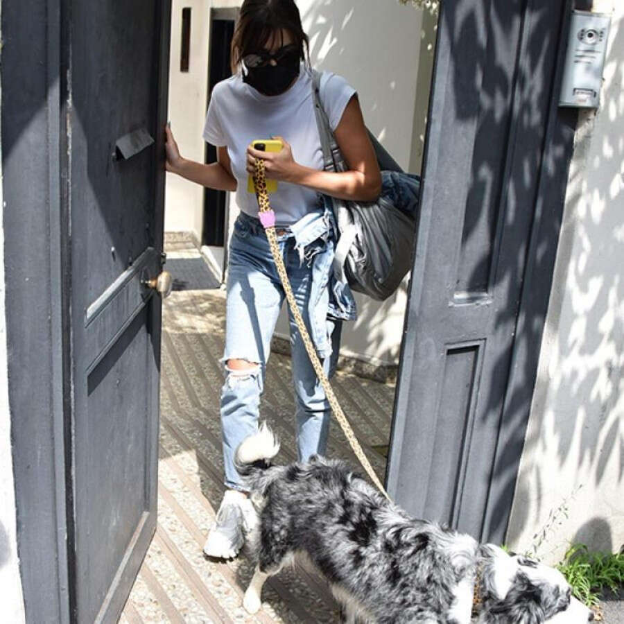 Köpeği ile görüntülenen Hande Erçel, gazetecilerin sorularını yanıtladı. Ünlü oyuncu, aşı olduğunu ve sete gittiğini söyledi.