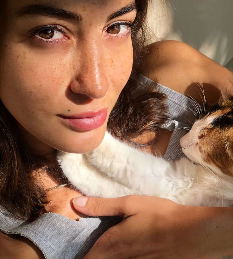 Oyuncu, Instagram hesabından kedisiyle pozunu paylaştı. Makyajsız en doğal halini hayranlarının beğenisine sunan oyuncu, hayvan sevgisini aşıladığı içinde de takdir topladı.