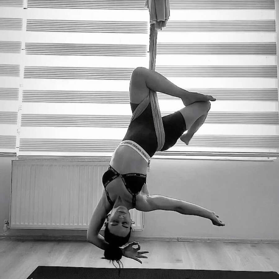 Bir süredir yoga yapan ünlü şarkıcı Simge Sağın, ip üzerinde yaptığı hareketlere bir yenisini daha ekledi. Tavana asılı ipe dolanarak ters duran Sağın, esnekliğiyle takipçilerinden tam not aldı.