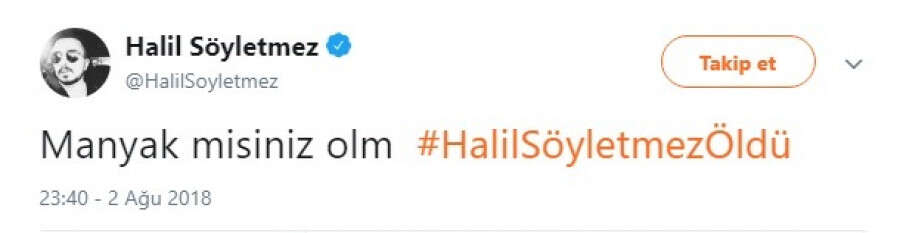 Twitter'da öldüğüne yönelik açılan hashtag ile günün konusu olan Halil Söyletmez kimdir? Konu ile ilgili yine Twitter'dan açıklama yapan Halil Söyletmez ile ilgili merak edilenler haberimizde...