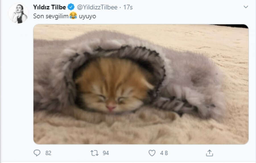 Tilbe, sahiplendiği yavru kedinin fotoğrafını "Son sevgilim, uyuyor" notuyla paylaştı.