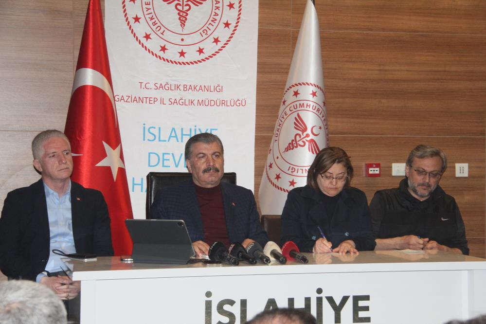 Depremde hasar gören sağlık kuruluşları hakkında da bilgi veren Koca, ''Gaziantep’te 16 Devlet Hastanemiz, 1 üniversite hastanemiz, 2 Toplum Sağlığı Merkezimiz, 167 Aile Sağlığı Merkezimiz, sayısı 51’i bulan 112 istasyonlarımız ve 104 Sağlık Evimiz halen hizmet vermektedir. Sağlık hizmetinde boşluğa meydan vermemek amacıyla 2’si İslahiye’de, 1’i Oğuzeli’nde, 1’i Nurdağı’nda olmak üzere toplam 4 sahra hastanesi kurulmuştur. Çadır kentlerde kurulan acil müdahale ünitelerinin sayısı 16’dır. Afet, yuvalarımızla birlikte depremin ardından çok ihtiyaç duyulacak sağlık hizmetinin verildiği yapıları da etkiledi. Sağlık hizmeti almaya mani bir durum olmadığı az önceki ifadelerimde açıktır.