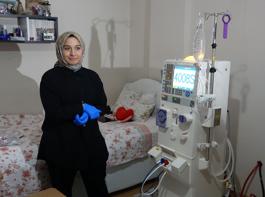 27 yaşındaki diyaliz hastası Edagül Genç, kendi diyalizini 15 dakikada kendisi hazırlayıp evinde kendisi uyguluyor.