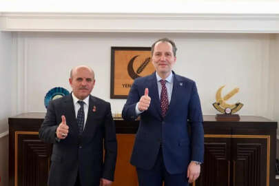 Korkmaz'a Yeniden Refah Partisi rozetini genel başkan Fatih Erbakan taktı.