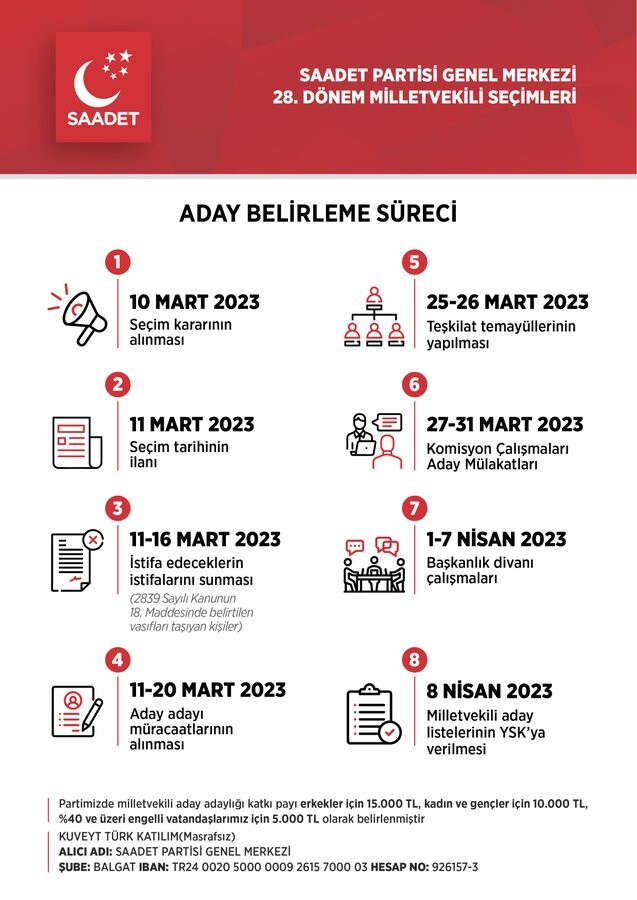 Saadet Partisi 28. Dönem Milletvekilli Seçimleri Aday Belirleme Süreci'ni paylaştı.