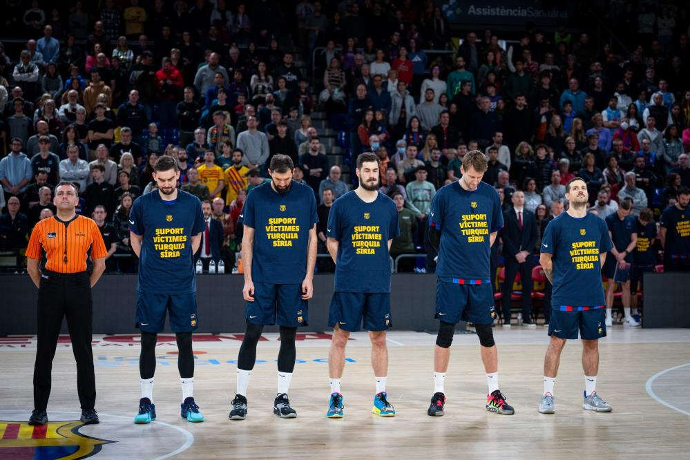 Milli basketbolcu Sertaç Şanlı'nın formasını giydiği Barcelona'da oyuncular, Rio Breogan ile oynadıkları karşılaşmaya üzerinde 'Türkiye ve Suriye'deki depremzedelere destek verin' yazılı tişörtlerle çıktı.