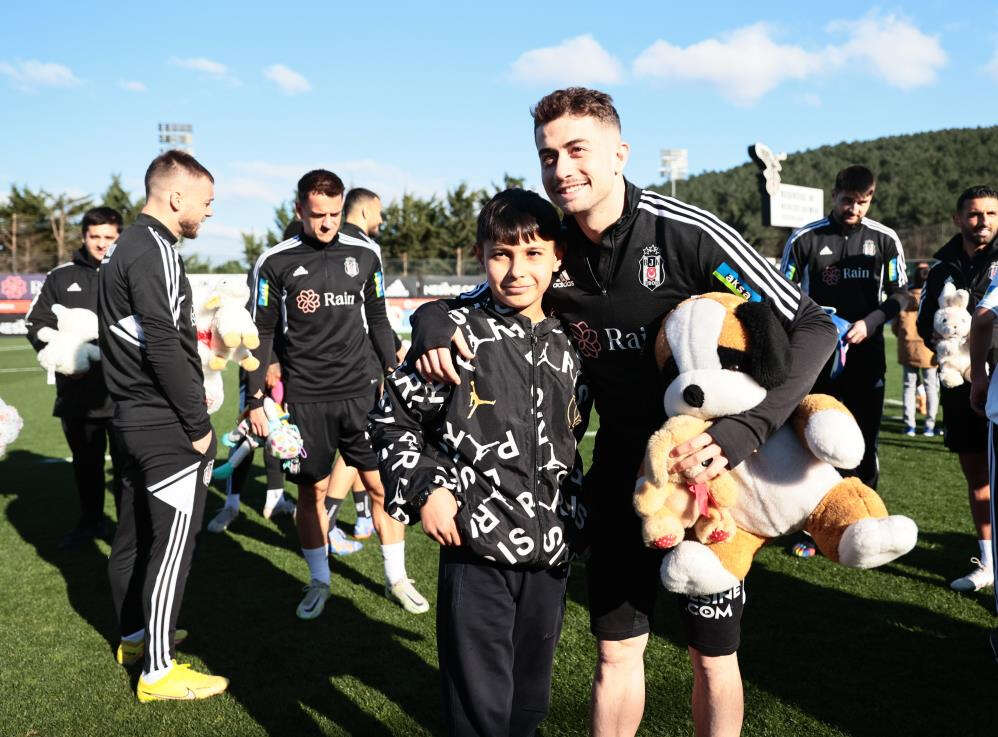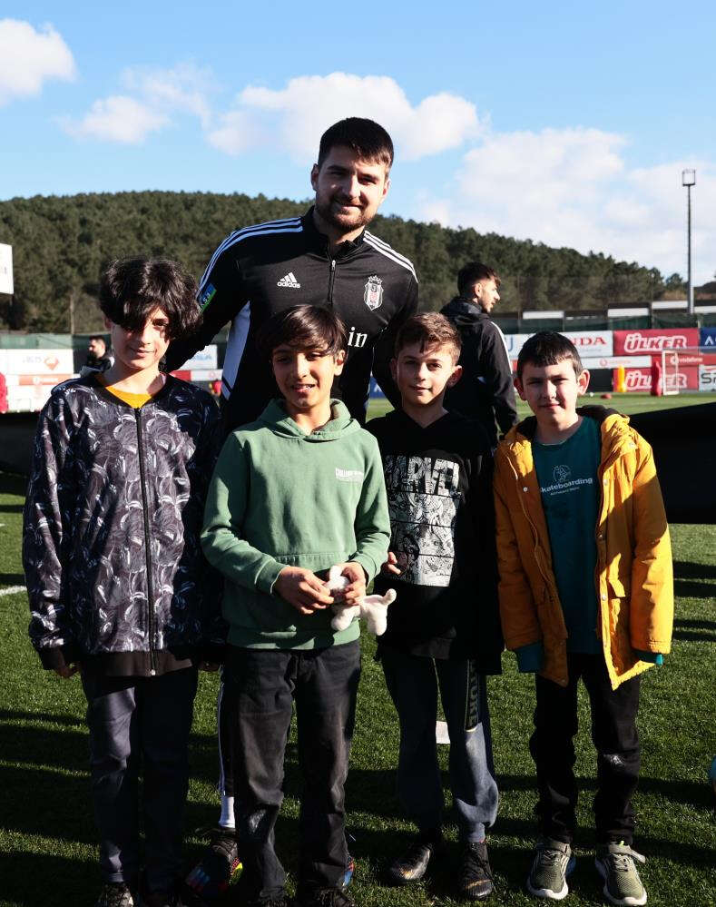 Siyah-beyazlı futbolcular, bugünkü antrenmanı takip eden depremzede çocuklarla yakından ilgilendi.