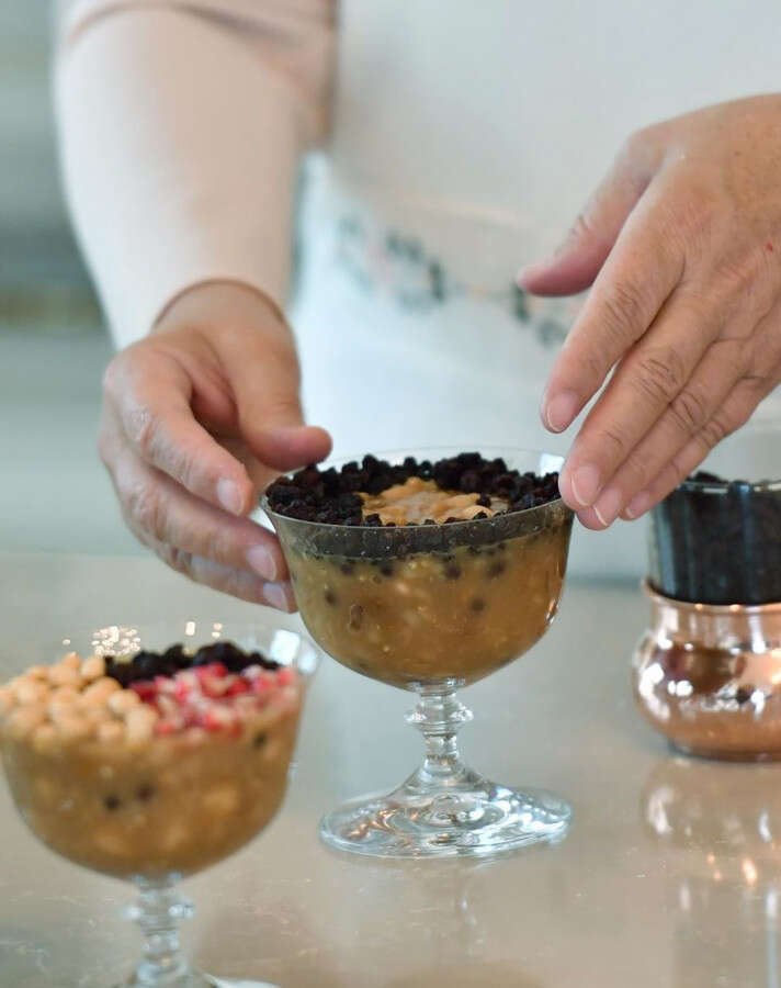 Yurdumuzun dört bir yanından sofralarımıza ulaşan yerel ürünlerle hazırladığım aşurede şeker kullanmadık. Onun yerine kuru meyveler ve biraz da üzüm pekmeziyle tatlandırdık. Bu lezzetli, sağlıklı tarifin, sofralarınıza neşe getirmesini diliyorum."