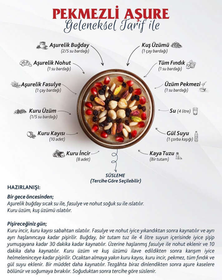 "Tarifini paylaştığım aşure, herkesin çok iyi bildiği, yüzyıllardır mutfaklarımızda pişirilen geleneksel bir reçete. Aşure paylaşmaktır, komşularımıza ulaştırmayı unutmayalım.