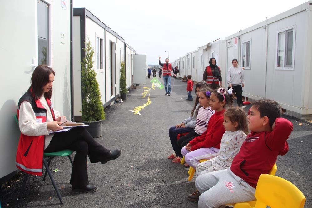 Hatay Büyükdalyan’da İl Göç İdaresi Müdürlüğü tarafından daha önce kurulumu yapılan konteyner kente depremzedeler yerleştirilmeye başlandı. Etap etap 918 konteynere yaklaşık 4 bine yakın depremzede taşınacak. Konteyner kentte okul öncesi eğitimin yanı sıra depremzede çocuklar için çeşitli etkinlikler düzenleniyor. Cami ve marketin de yer aldığı konteyner kentte depremzede vatandaşların yemek ihtiyacı da 3 öğün karşılanıyor. Mahalle ortamının oluştuğu kentte, kadınların konteynerlerin önünde oturup sohbet ettikleri misafirlerine kahve ikram ettikleri görüldü.