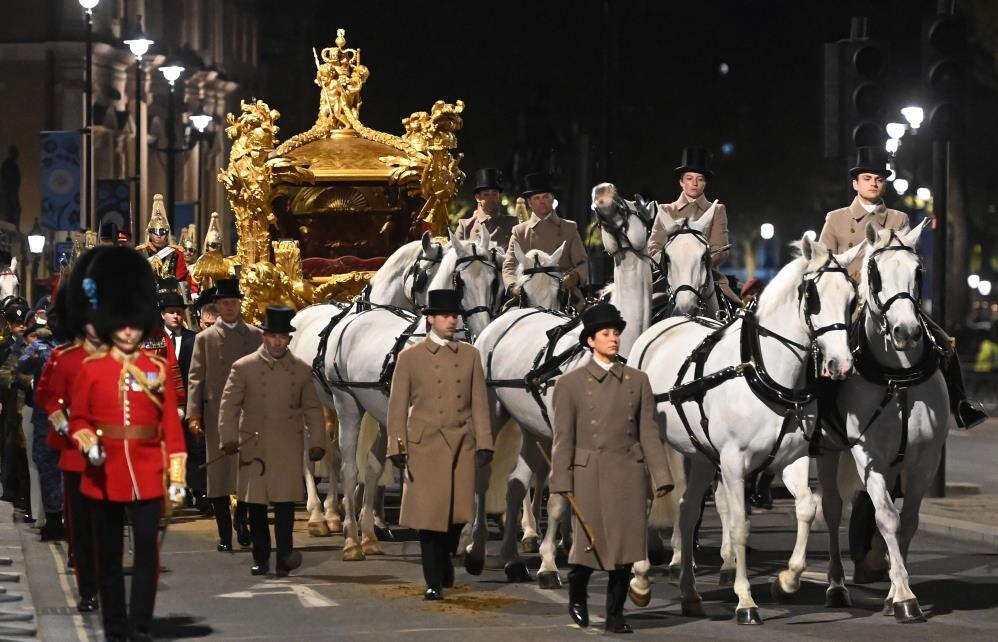 İngiltere'de, Kral III. Charles’ın 6 Mayıs’taki taç giyme töreni için dün gece yarısı prova yapıldı.
