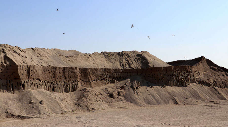 Bismil'de faaliyet gösteren bir beton firmasınca daha önce taşınan 5 bin ton kum yığınına kırlangıçların yuva yaptığını gören işçiler, durumu firma yetkililerine bildirdi.